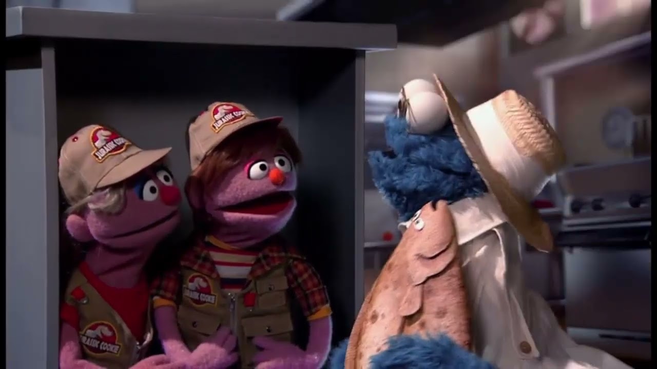 Cookie Monster is a scientist. He and his grandchildren come to Jurassic Cookie. There, they see a cookie dinosaur and run away and hide. Things turn around when he realizes that the dinosaur is made of cookies. The Jurassic Cookie segment first aired in Sesame Street Episode 4526 and is an adaptation of Jurassic Park.